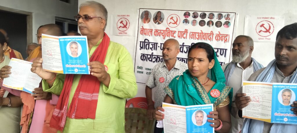 जलेश्वर नगरपालिकामा करीब एक दर्जन विभिन्न राजनीतिक पार्टीहरु आसन्न निर्वाचनको लागि उम्मेदवारी गराएर चुनावी अभियानमा लागेकोमा प्रतिज्ञापत्र सार्वजनिक गर्ने नेकपा माओवादी केन्द्र पहिलो पार्टी हो ।
