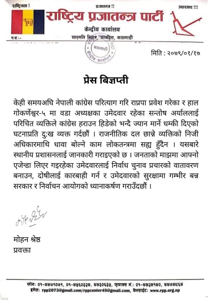 राप्रपाले प्रेस विज्ञप्ति जारी गरी ध्यानाकर्षण गराएको हो।