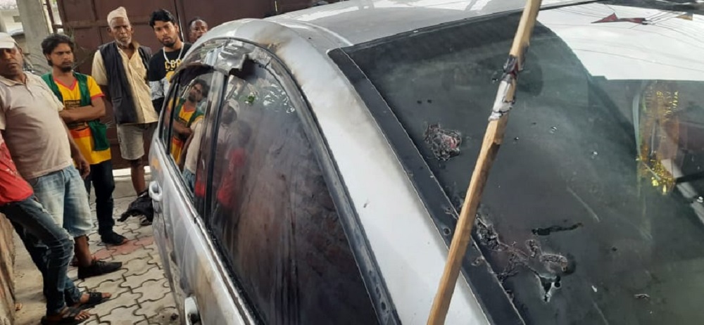 प्रहरी उपरीक्षक शान्तिराज कोइरालका अनुसार गौतमले घरमै पार्किङ गरेर राखेको बा १२ च ९३८४ नम्बरको कारमा आगजनी भएको हो।