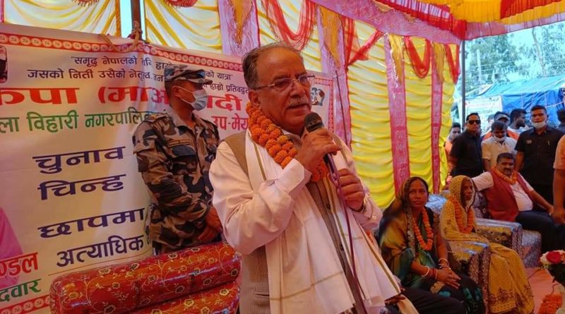 शनिवार धनुषाको मिथिला नगरपालिकाको बडहडी बजारमा माओवादी केन्द्र र जसपा गठबन्धनले आयोजन गरेको चुनावी सभामा बोल्दै अध्यक्ष प्रचण्डले अब संसद चलेपछि एमालेले नाराबाजी गरेपनि नागरिकताको समस्या समाधान गर्ने बताए।