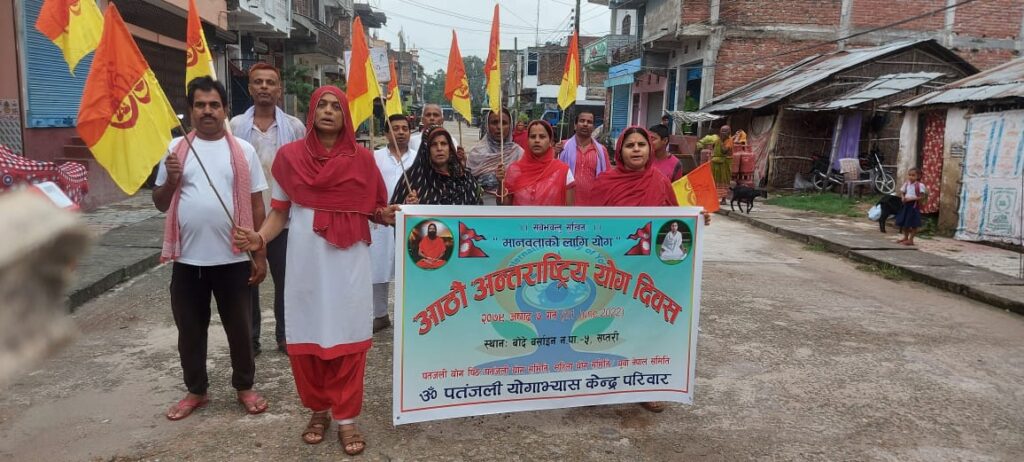 बोदे बर्साइन । “स्वास्थ्यका लागि योग” भन्ने मुल नाराका साथ नगर पतंजली योग समिति बोदे बर्साईनले आठौं अन्तराष्ट्रिय योग दिवस मनाएको छ । मंगलबार बोदे बर्साईन नगरपालिका -५ स्थित योगाभ्यास केन्द्रमा भएको कार्यक्रममा योगको महत्व दर्शाउँदै दिवस मनाइएको हो । कार्यक्रममा नगर पतञ्जली योग समितीका अध्यक्ष संजीव कुमार अग्रवालले तन र मनको जोड नै योग भएको बताए ।उनले शरीरलाई स्वस्थ एवं तन्दुरुस्त राख्नको लागि गरिने केही आशनहरुलाई योग भनेर बुझिने गरेको भन्दै वास्तविक योग तन र मनको एकत्रीत रुप भएको बताए । “कुनै धर्म र जातको आधारमा योगले भिन्नता राख्दैन”-उनले भने-“अहिले कोरोनो भाइरसले विश्वलाई नै आक्रान्त तुल्याएको अवस्थामा नियमित योग तथा ध्यान गर्दा शरीरमा शक्ति मिल्छ,यसले कोरोना विरुद्ध लड्न फाइदा पुग्छ ।“ नगर पतञ्जली योग समितिकाका अध्यक्ष अग्रवालको अध्यक्षतामा भएको कार्यक्रममा नगर पतंजली योग समितीका मन्त्री सुरेन्द्र प्रसाद साह , नगर समितीका प्रतिनिधि आशा कुमारी साह , राजब्बलव साह , मायाशन्कर साह , बोदे बर्साईन नगरपालिकाका स्वास्थ संयोजक तथा नगर समितीका प्रतिनिधि बैजनाथ साह लगायतले योग दिवसको शुभकामना दिदै योगको महत्व र फाइदाबारे बोलेका थिए । सो अवसरमा पतञ्जली योग समिति नेपालले निर्देशन गरेको प्रोटोकल बमोजिमका योग सम्बन्धी आशन र प्राणायामहरु प्रमुख प्रशिक्षक नगर अध्यक्ष संजीव कुमार अग्रवाल र नगर प्रतिनिधि शैलेन्द्र साहले प्रस्तुत गरेका थिए ।आज बोदे बर्साईन लगायत खडक नगरपालिकाको कल्याणपुरमा पनि कार्यक्रम मनाएको नगर अध्यक्ष अग्रवालले बताए ।