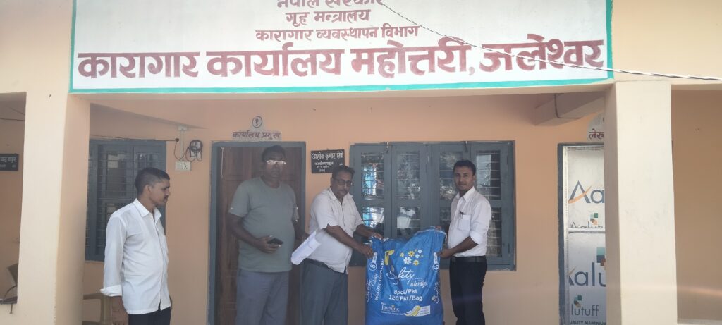 रेडक्रस शाखाका सभापति दिपक मिश्रले प्रत्येक महिलालाई महिनाको एक पटक अनिवार्य प्रयोगमा आउने कुरालाई मध्यनजर गर्नुहुँदै स्वर्य कारागारमा पुगेर त्यहाँ रहेका ५१ जना महिला कैदीबन्दीका लागि १०० प्रति सेनेटरी प्याड प्रदान गर्नुभएको हो ।