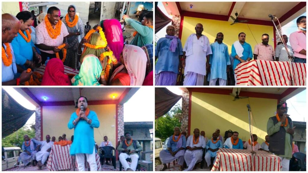 नेकपा एमाले कार्यकर्ता भेटघाट कार्यक्रममा केन्द्रिय सदस्य संजीव झा तथा प्रदेश सदस्य तथा विदेह न.पा प्रमुख बेचन दासले अबिर माला लगाएर स्वागत गरेका थिए ।