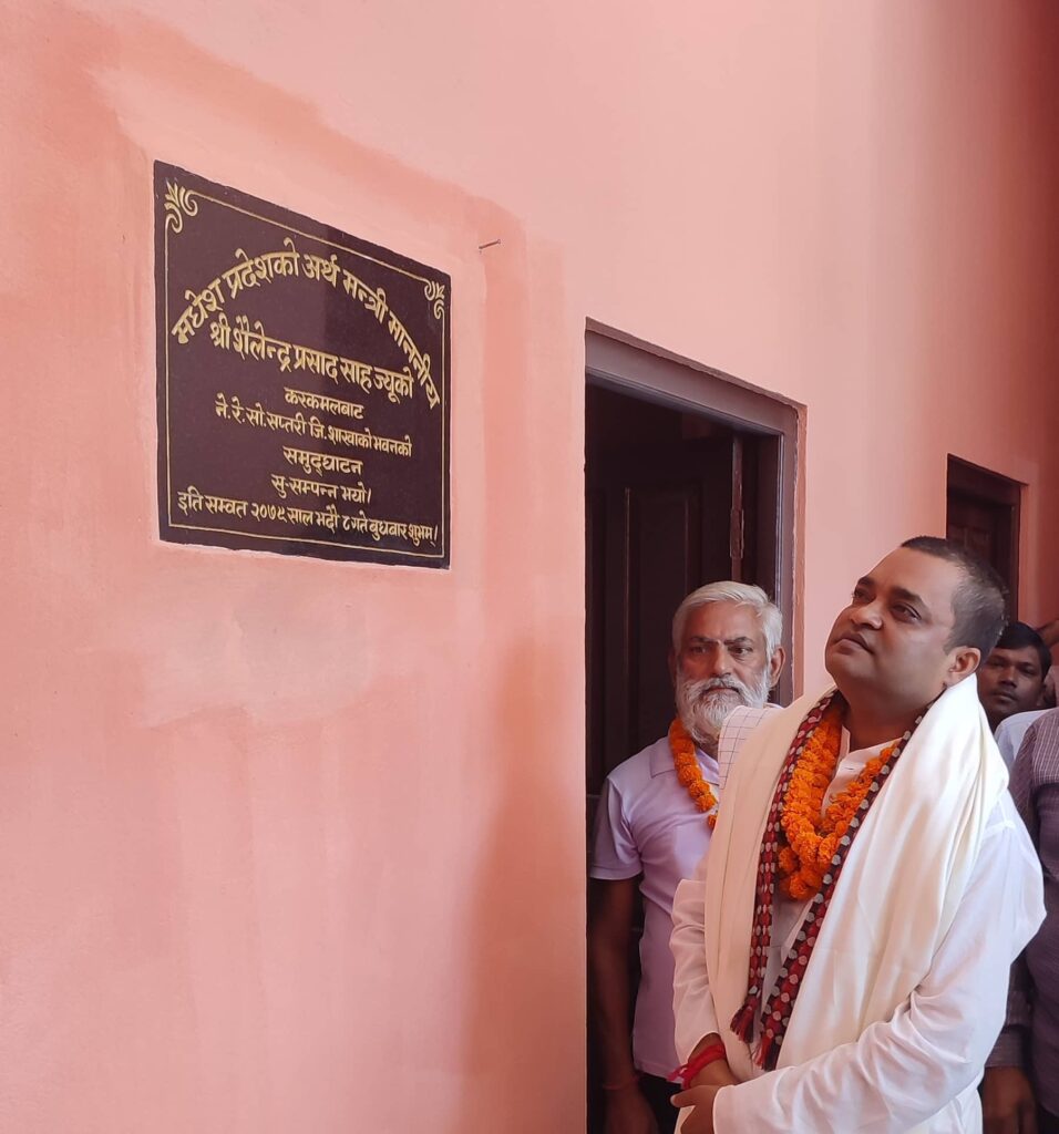 नेपाल रेडक्रस सोसाईटीका तत्कालीन केन्दी्रय सभापति संजिव थापाले ०६८ सालमा प्रस्तावित भण्डार गृह भवको शिलान्यास गरेका थिए । तर आवश्यक रकमको अभावका कारण निर्माण कार्य अघि बढन नसकेपछि एक वर्ष अघि मात्र मधेश प्रदेशका अर्थमन्त्री साहले आफ्नो संसदीय विकास कोषबाट २५ लाख र प्रदेश सभासदस्य मनिष सुमनले ८ लाखको सहयोग उपलब्ध गराएका थिए ।