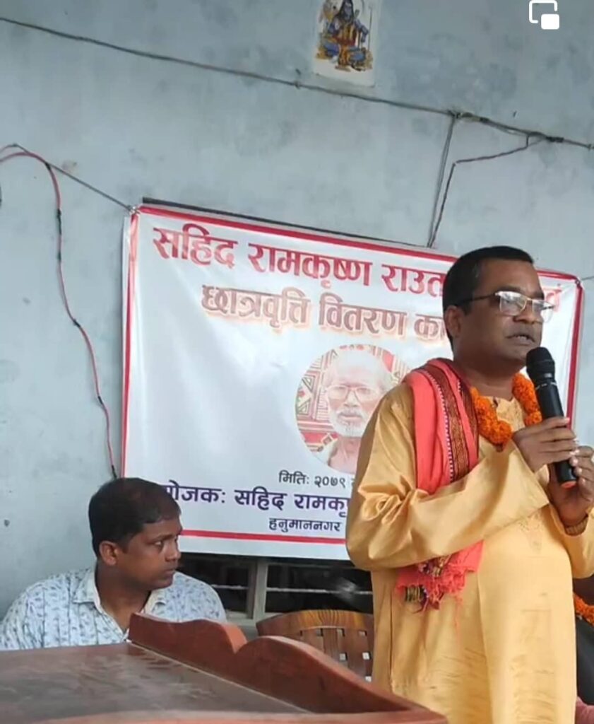 छात्रवृत्ती वितरण गर्दै मन्त्री साहले भने प्रतिष्ठानलाई नगद ५१ हजार सहयोग गर्ने प्रतिवद्धता व्यक्त गरे । प्रतिष्ठानका अध्यक्ष राजकुमार राउतको अध्यक्षतामा आयोजित कार्यक्रममा अर्थमन्त्री साह, विशिष्ट अतिथि सामाजिक विकास मन्त्री नवलकिशोर साह, जसपाका राजनीतिक समिति सदस्य जगदेव यादव, संघीय परिषद् सदस्य श्यामदेव यादव, हनुमाननगर कंकालिनी नगरपालिकाकी उपमेयर सरिता सिपलिया, निमित्त प्रमुख प्रशासकीय अधिकृत श्यामसुन्दर मण्डल लगायतकाले शुभकामना दिएका थिए ।