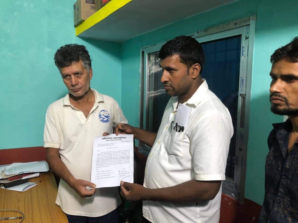 शहिदनगर नगरपालिकाका करारका कर्मचारीले हटाएपछि निमित्त प्रमुख प्रशासकीय अधिकृत रामनरेश चौधरी र उपमेयर लाई ज्ञापनपत्र बुझाएका छन ।