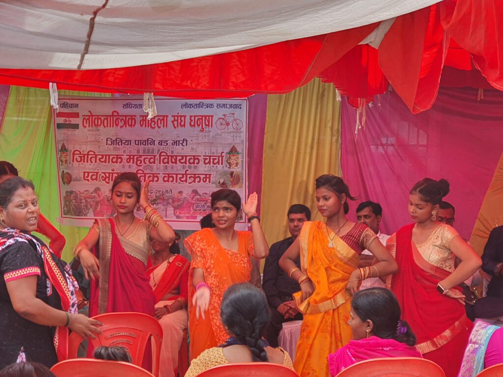 लोसपाको पार्टी कार्यालयमा आयोजित कार्यक्रम गरिएको जितिया समारोहमा उपस्थित हुँदै राजनीतिकर्मी, पत्रकार आदिवासी महिलाको सहभागिता थियो ।