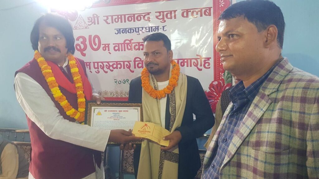 जनकपुरधाम । जनकपुरधामको प्रसिद्ध रामानन्द युवा क्लबले आफ्नो ३७ औँ वार्षिकोत्सवको अवसरमा तीन जनालाई मंगलबार सम्मान गरेको छ ।