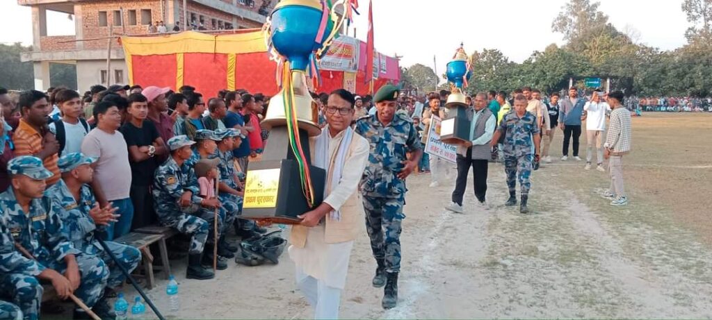 फाइनल खेलपछि आयोजित एक समारोहकाबीच विजेता र उप विजेता टिमलाई पुरस्कार वितरण गरिएको छ ।